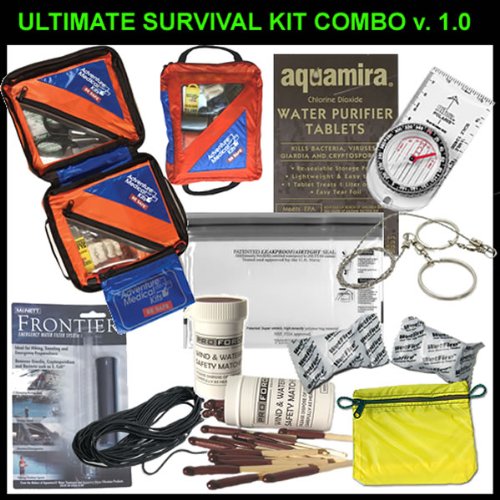 The perfect combination of survival, medical, and gear repair kits, this kit begins with the S.O.L. 3 kit by Adventure Medical Kits, and continues with other products to bring you a comprehensive survival and preparedness package.MEDICALS:[2] Dressing, Gauze, Sterile, 2" x 2", Pkg./2[2] Bandage, Knuckle[2] Dressing, Gauze, 4" x 4"[4] Bandage, Fabric, 1" x 3"[2] Dressing, Sterile, 3" x 4"[1] Bandage, Conforming Gauze, 2"[2] Dressing, Gauze, 3" x 3", Pkg./2[4] Bandage, Butterfly Closure[1] Tincture of Benzoin[2] Triple Antibiotic Ointment, 1/32 oz[3] After Cuts & Scrapes Wipes[1] Povidone Iodine, 3/4 oz[1] Tape, 1/2" x 10 Yards[1] Gloves, Nitrile (Pair), Hand Wipe[11] Moleskin, Pre-Cut & Shaped[1] EMT Shears, 4"[2] After Bite Wipes[2] Antihistamine (Diphenhydramine 25 mg)[4] Ibuprofen (200 mg), Pkg./2REPAIR:[3] Cable Ties, 8"[3] Cable Ties, 4"[5] Safety Pins[1] Duct Tape, 2" x 50"SURVIVAL TOOLS:[1] Tinder Quick Firestarter[1] Mini Rescue Flash Signal Mirror[1] Headlamp, 2 watt LED w/ headband[2] Aluminum Foil, Heavy Duty, 3 Sq. Ft.[1] Mini Rescue Howler Whistle[1] Magnesium Fire Starter, 4.5 mm, w/ Striker[1] The Silva Polaris Base Plate Compass[1] Compass, Button, Liquid Filled[1] Heatsheet Survival Blanket[10 Pack] Military Aquamira Chlorine Dioxide Water Purification Tablets?1 Tab / 1 Liter. 3 yr shelf life.[1] Frontier Emergency Water Filter Straw:Filters up to 20 gallons of water! Removes giardia, cryptosporidium, and bacteria such as E. coli.[1] 8 Strand Survival Wire Saw[1] Aloksak 9"x6" Waterproof Bag (980cc)[10 Feet] Parachute Cord, 7 Strand (550 cord)(10 ft)[25] Survival Matches, Bulk Tube?Wind & waterproof, 12 sec. burn, sealed plastic vial and striker.?NATO approved.[2] Wetfire Tinder Cubes, (individually sealed)[1] SilNylon Coated Ripstop Waterproof Survival Carry Pouch 9"x6" Read moreReview Rating :